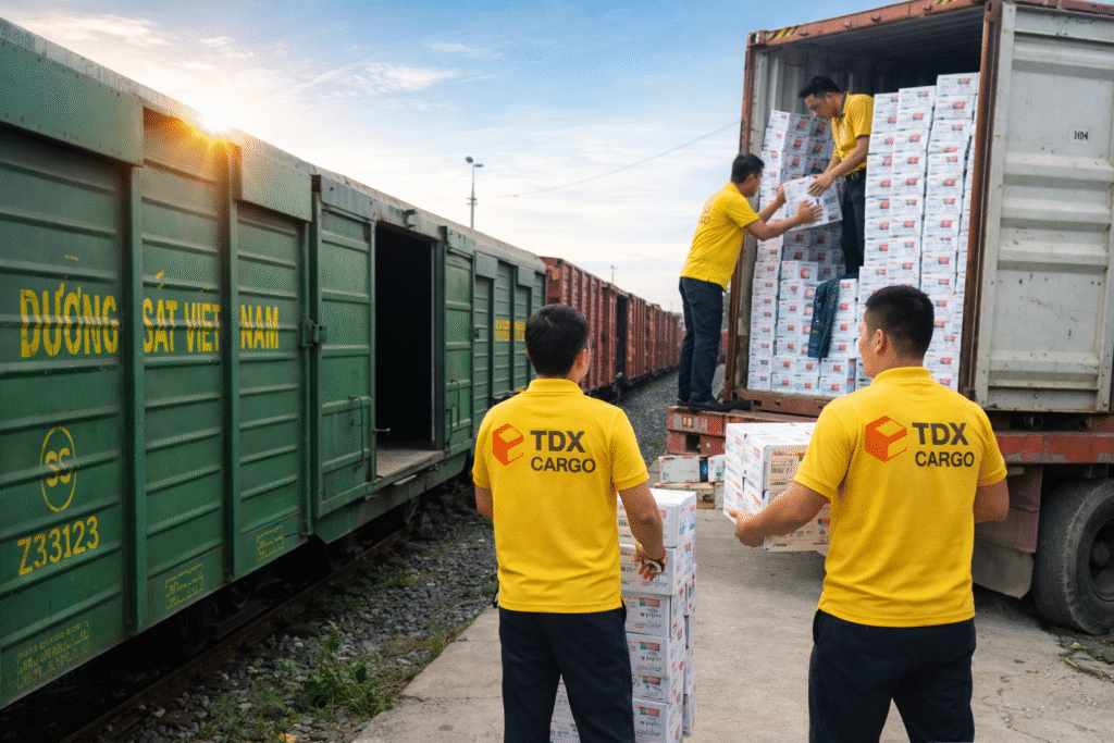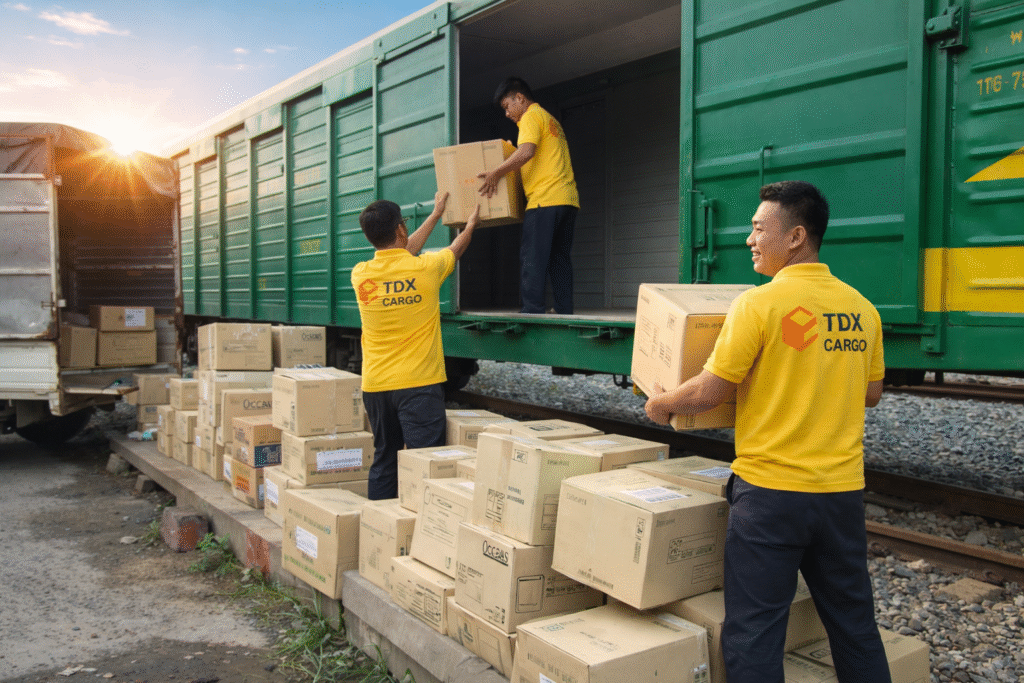 👉 TDX Cargo cung cấp dịch vụ vận chuyển hàng hóa đường sắt giao nhận tận nơi uy tín, triển khai trọn gói từ nhận hàng – gửi tàu – giao tận tay khách hàng trên toàn quốc.